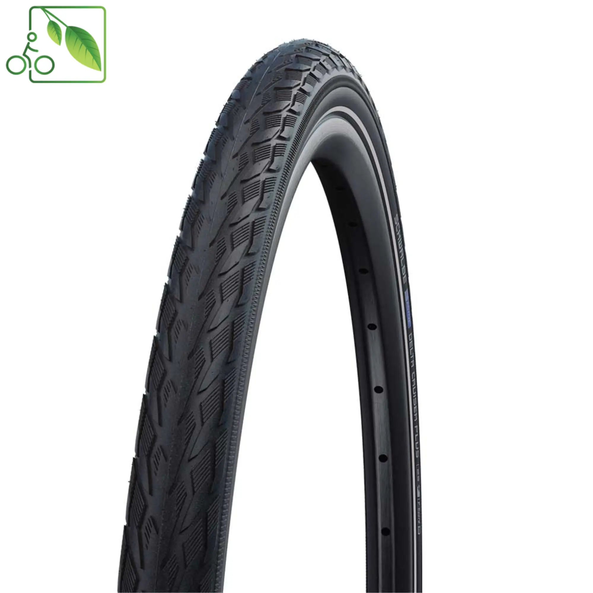 De Schwalbe Delta Cruiser Plus is een voordelige stads- en tourband met een uitstekende lekbescherming. Daarvoor zorgt de krachtige 3mm PunctureGuard anti-leklaag. Het klassieke profiel is veelzijdig en biedt aangename roleigenschappen. Uitgerust met een hoogkwalitatief 50 EPI karkas en reflectie.