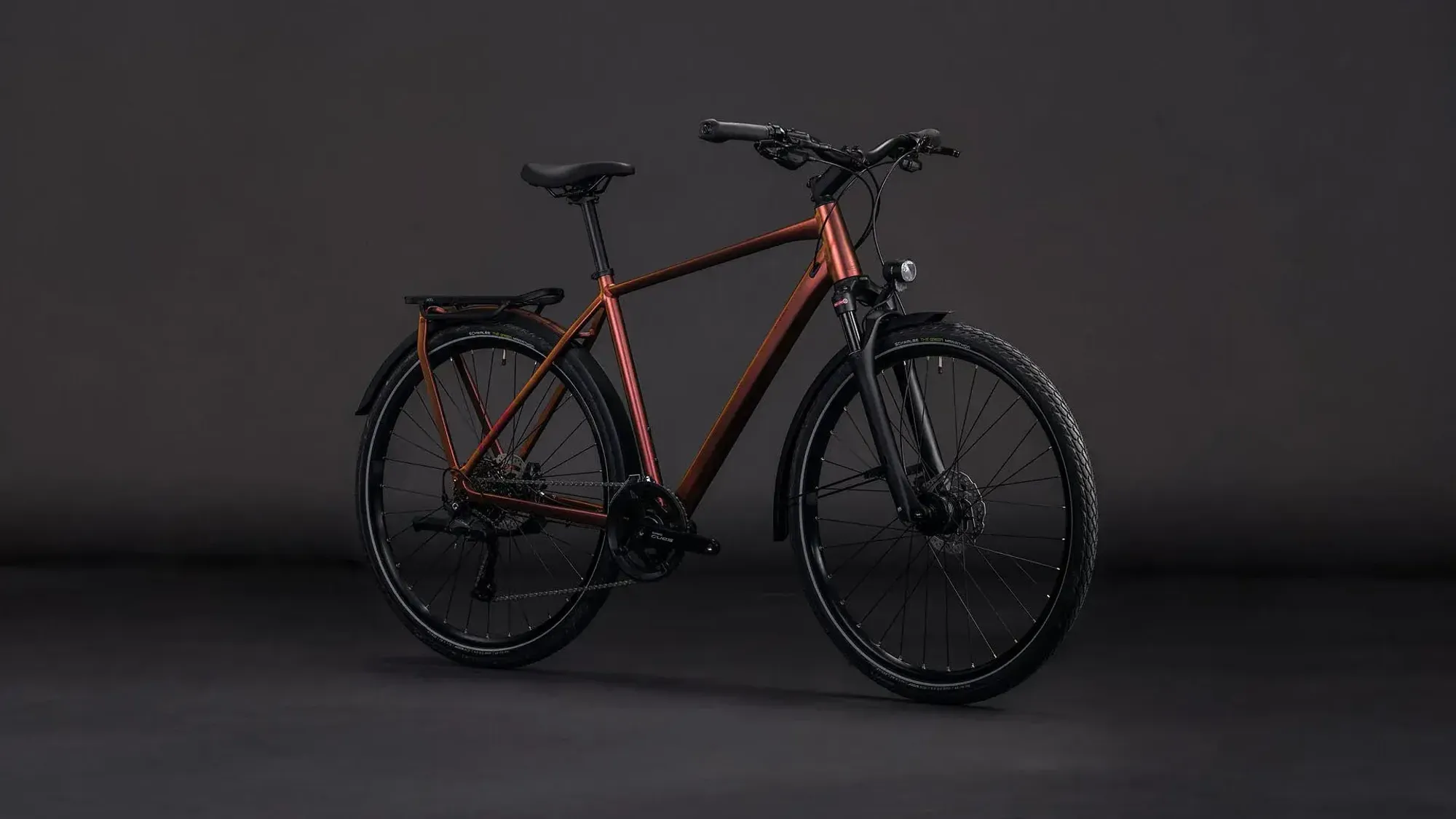 De Kathmandu Pro heeft een stevige, geïntegreerde IC 3.0-bagagedrager, spatborden en een standaard. De interne kabelgeleiding zorgt voor een strak uiterlijk en minder onderhoud. De praktische naafdynamo voorziet je verlichting van stroom, wat de fiets compleet maakt. Dit is de ideale fiets voor wie een complete, robuuste en comfortabele trekkingfiets zoekt die klaar is voor elk avontuur.