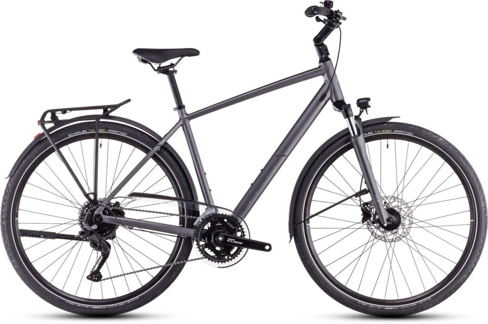 De Touring Pro heeft twee belangrijke onderscheidende kenmerken. Allereerst het hoogwaardige aluminium frame met een zitpositie die lange dagen in het zadel tot een feest maakt. En daarnaast een soepele verende voorvork plus een paar hydraulische schijfremmen. Als het gaat om het leveren van remkracht en -consistentie zijn die namelijk onovertroffen. De aandrijflijn van Shimano – natuurlijk met kettingscherm, zodat je broek netjes blijft – biedt met 2x9 Shimano Cues-versnellingen, een lichtlopende naafdynamo voorziet de verlichting onbeperkt van stroom. Kortom, de perfecte metgezel voor vele honderden kilometers fietsplezier.