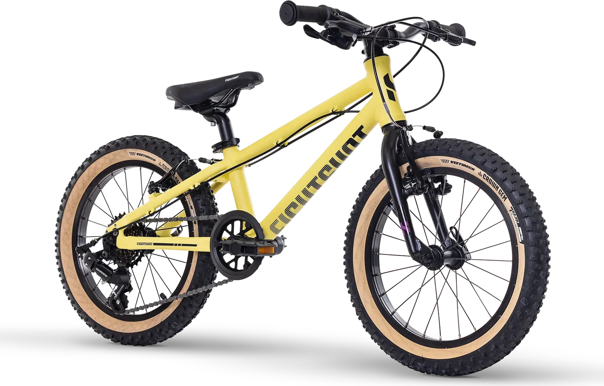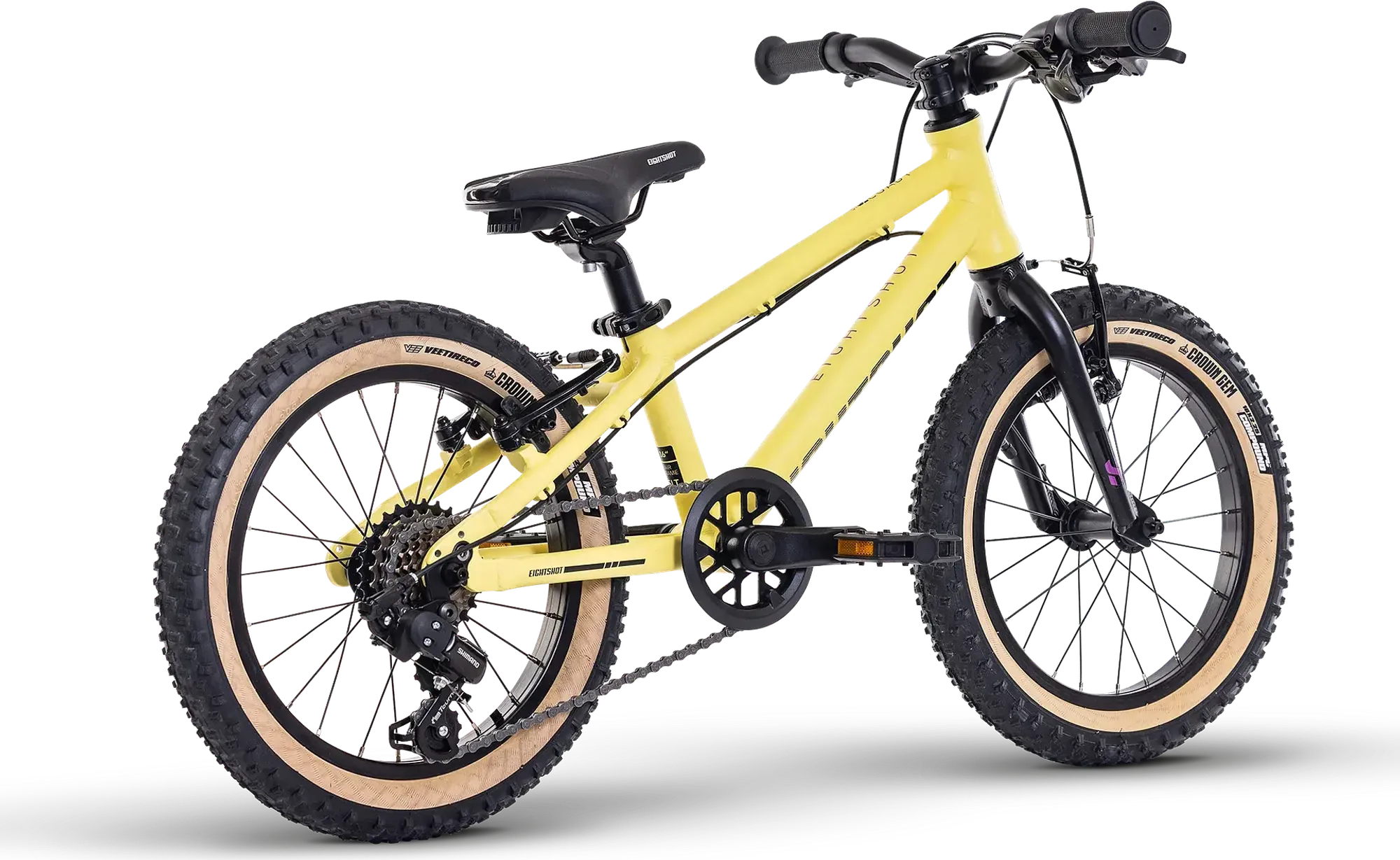 Het EIGHTSHOT SEAT zadel (216 mm x 140 mm) is speciaal ontworpen voor comfort tijdens langere ritten en avonturen in het bos of de bergen. De ergonomie is perfect afgestemd op de anatomie van kinderen in deze leeftijdsgroep.