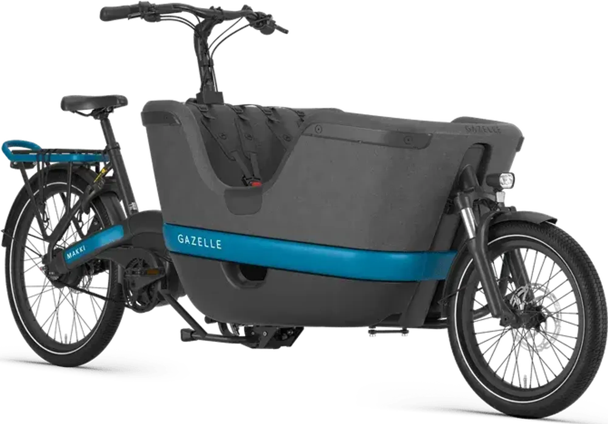 De Gazelle Makki Load is de uitkomst van uitgebreid onderzoek naar wat ouders en kinderen werkelijk nodig hebben in een elektrische bakfiets. Het resultaat is een doordacht ontworpen familietransportmiddel dat veiligheid, comfort en gebruiksgemak perfect combineert.