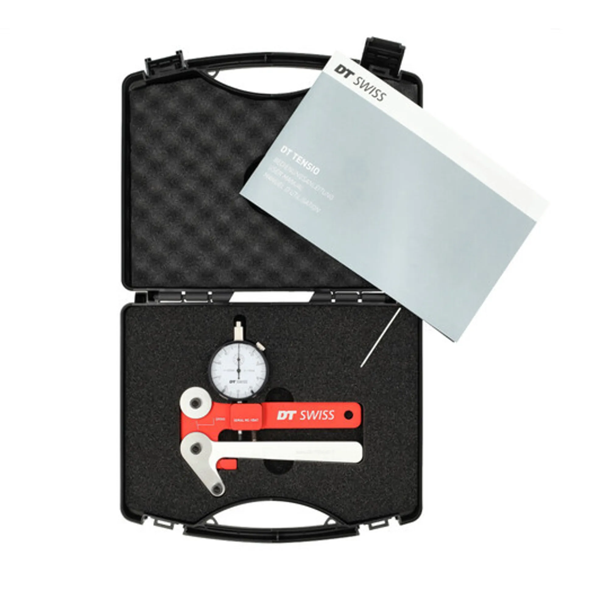De DT Swiss Tensio spaakspanningsmeter is een precisie-instrument voor het meten van de spaakspanning. Dit DT Swiss toestel dat is ontworpen, geassembleerd en gekalibreerd in Zwitserland, wordt gebruikt om de spaken tijdens de wielmontage progressief aan te spannen en de spanning te meten. Dit apparaat wordt geleverd met beschermkoffer.
