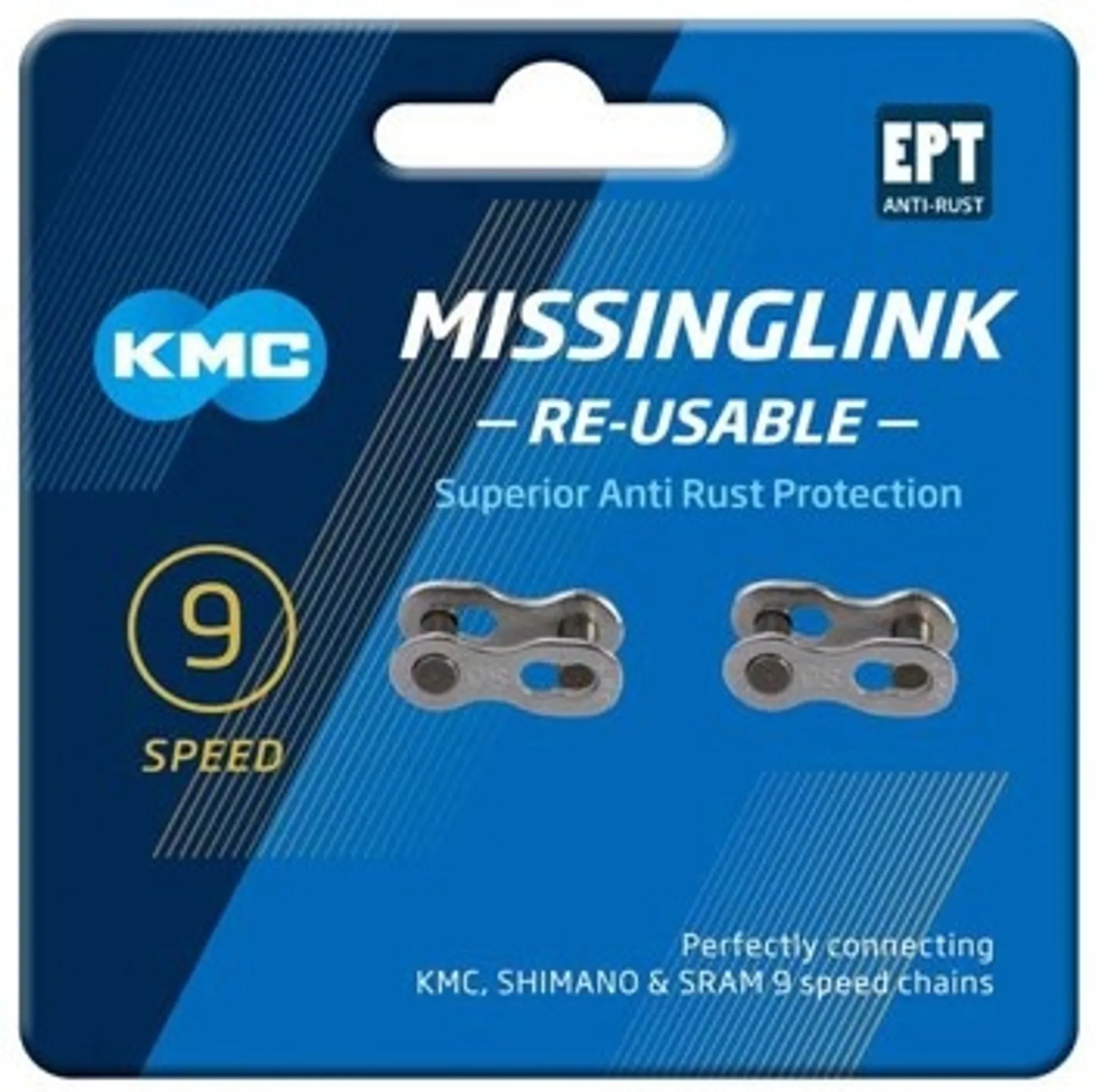 Deze KMC 9R EPT MissingLink is geschikt voor 9-speed KMC, Shimano en SRAM kettingen.