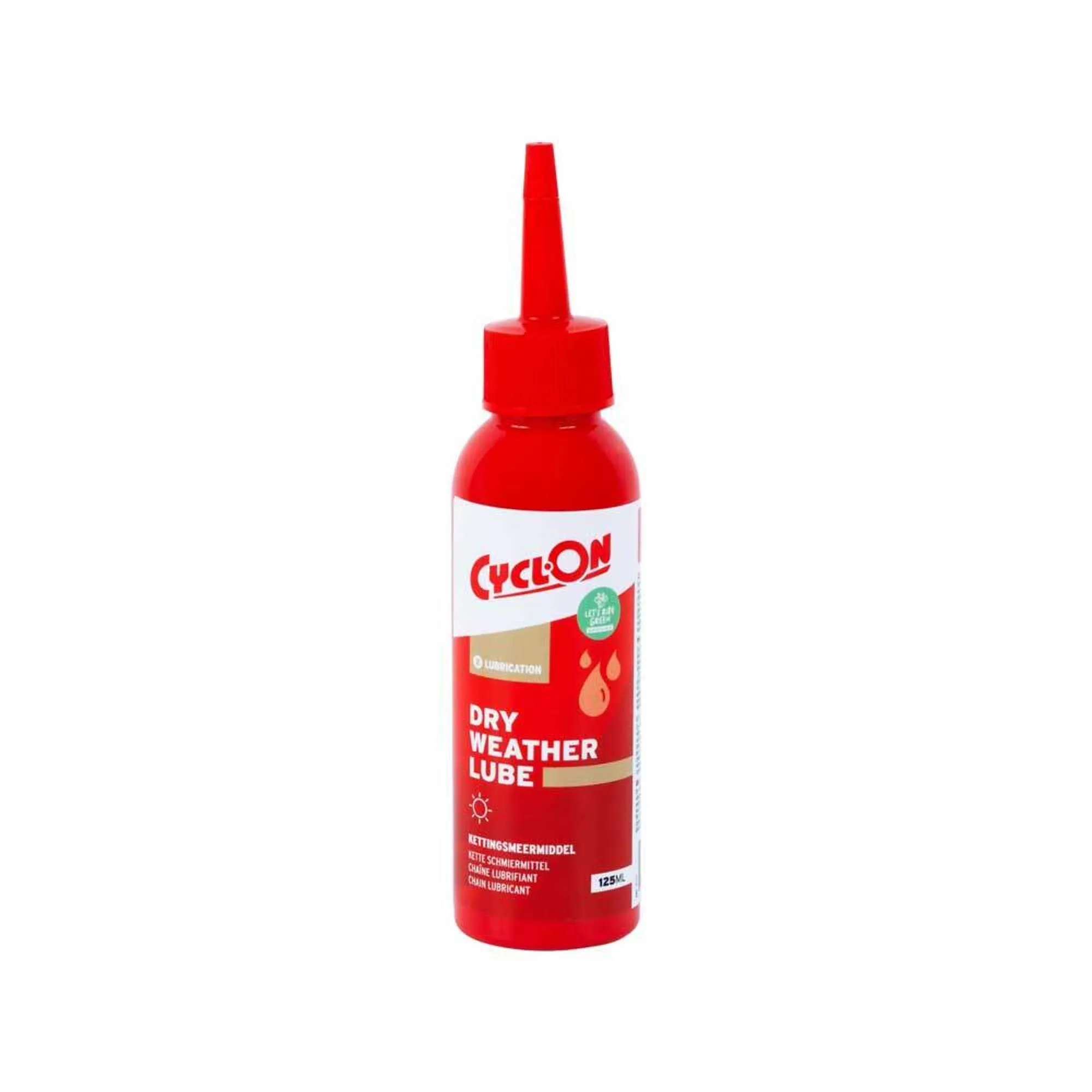 CyclOn Dry Weather Lube is een uniek kettingsmeermiddel speciaal ontwikkeld voor droogweer ritten en indoortrainingen. Dit smeermiddel trekt weinig (straat)vuil en stof aan waardoor de ketting minder vies wordt en je deze minder vaak hoeft schoon te maken. Verder heeft de CyclOn Dry Weather Lube een enorm lage wrijvingsweerstand en biedt hij een langdurige smering.