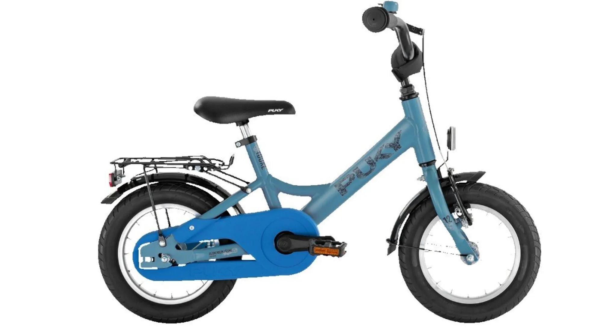 De PUKY Safety Set bevat alle essentiële veiligheidsvoorzieningen: een stuurkussen, bel, veiligheidshandgrepen, voor- en achterreflectoren, antislippedalen met een derde reflector, een gesloten kettingkast en een zijstandaard.