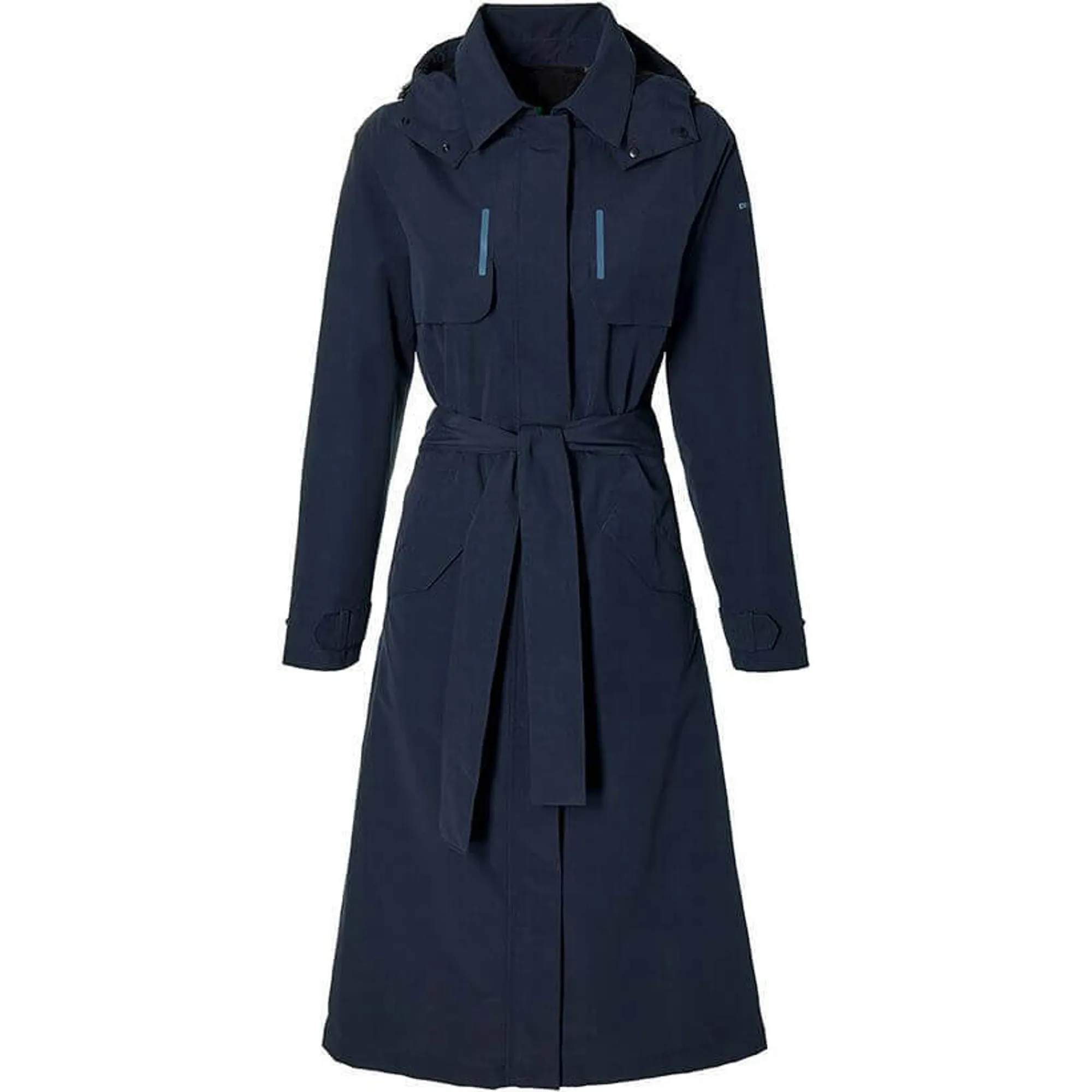 De Basil Mosse is een stijlvolle en functionele dames fietsregentrenchcoat in blauw met 5.000 WP waterdichtheid en 5.000 MVP ademend vermogen. De DWR-coating voorkomt klamheid. Voorzijde met twee ritsen (boven met kinbeschermer en onder) en extra beleg houdt kleding droog. Zijkanten hebben ook ritsen voor fietscomfort door extra stof voor bewegingsvrijheid. De trenchcoat heeft mesh/taffeta voering, steekzakken en ventilatie aan rug en voorzijde. Verstelbare, verlengde mouwen en taille-elastiek voor perfecte pasvorm.