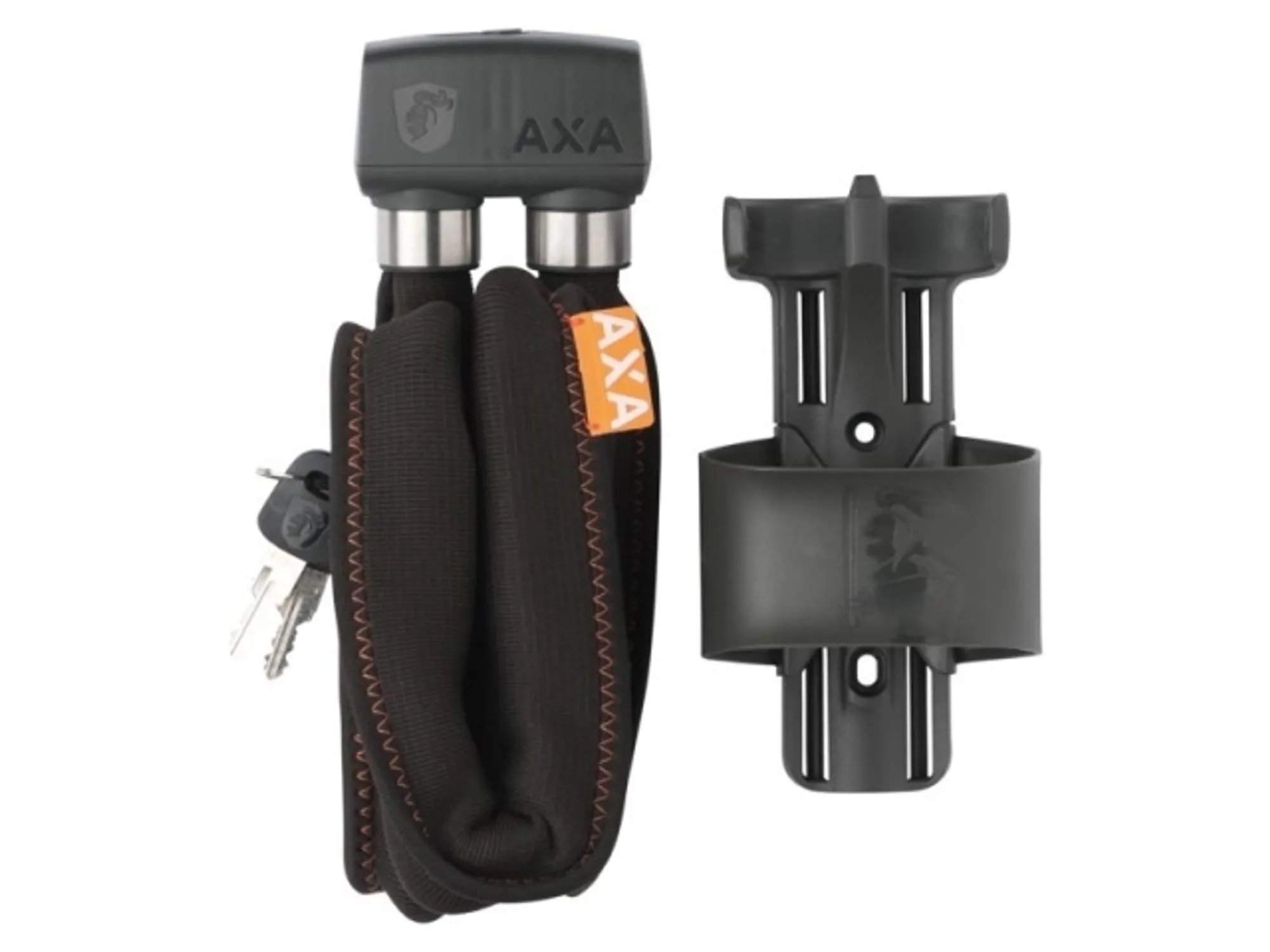 Het AXA Foldable 600 vouwslot is ideaal voor dagelijks gebruik en geschikt voor fietsen met een laag diefstalrisico. Het is voorzien van 6 mm dikke geharde stalen schakels met rubberen behuizing om krassen te voorkomen. Het wordt geleverd met een houder voor montage op bidonnokken of stang en is voorzien van een cilinderbescherming tegen vuil en vocht. Inclusief 2 sleutels.