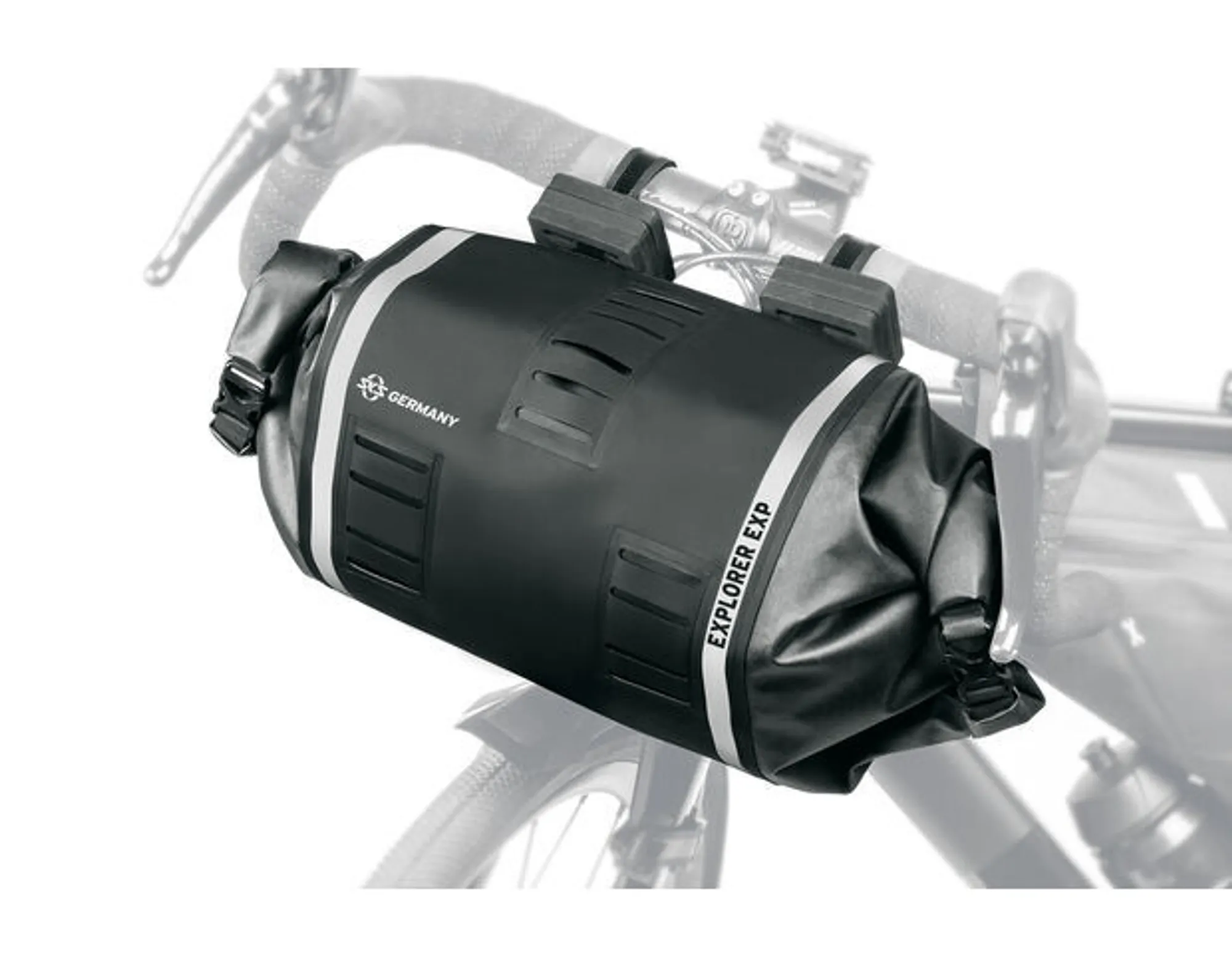 De SKS Explorer Exp. Stuurtas is een echte frontsoldaat, want zelfs in weer en wind houdt de waterdichte tas al je spullen schoon en droog. De tas kan aan beide zijden worden geopend en is daarom ideaal als je snel even iets uit je bagage wilt halen. De zijkanten kunnen worden op- of uitgerold voor als je meer of minder volume (max. 9 liter) nodig hebt. Dankzij het ontluchtingsventiel kun je de tas samendrukken nadat je hem hebt ingepakt. Je monteert de tas met twee met rubber beklede klittenbanden en zachte spacers, zodat de tas aan allerlei sturen met verschillende vormen kan worden bevestigd. De SKS Explorer Exp. Stuurtas heeft reflecterende elementen en lussen voor het bevestigen van een lampje. 8 spacers zijn bij de levering inbegrepen. Max. laadvermogen: 3 kg.