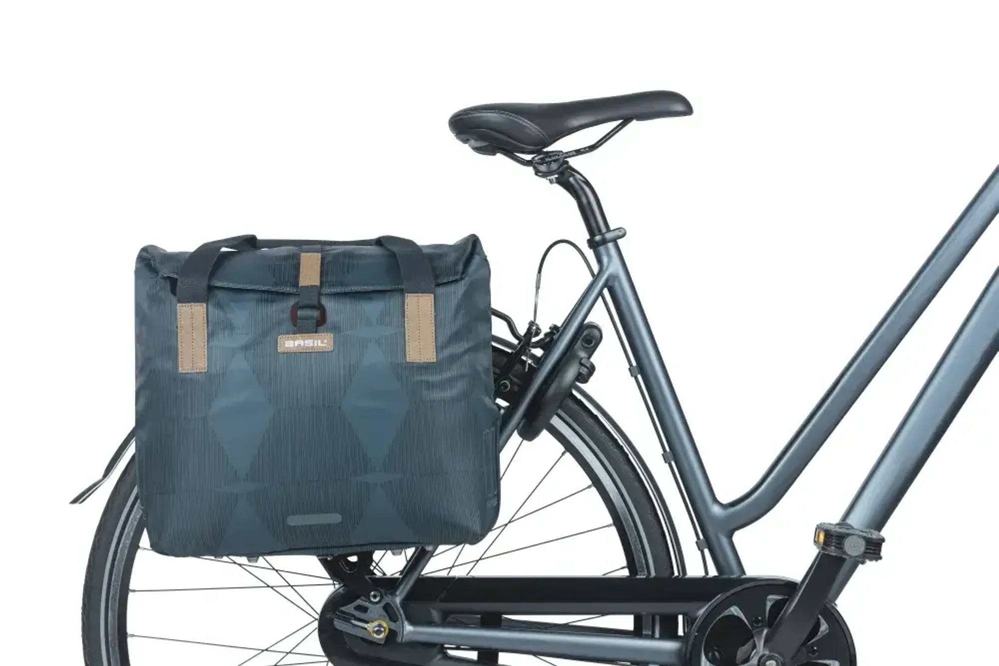 De Basil Elegance is een verfijnde fietsshopper met een elegante uitstraling, speciaal ontworpen voor gebruik achterop een damesfiets. Met een inhoud van 20 tot 26 liter biedt de tas voldoende ruimte voor je dagelijkse spullen of boodschappen. De tas is gemaakt van gerecycled PET en voorzien van een waterkerende sluiting, waardoor je inhoud goed beschermd blijft tegen een regenbui. Dankzij de slimme constructie bevestig je de tas eenvoudig op vrijwel elke bagagedrager. Praktisch én stijlvol, voor wie fietsen graag combineert met klasse en duurzaamheid.