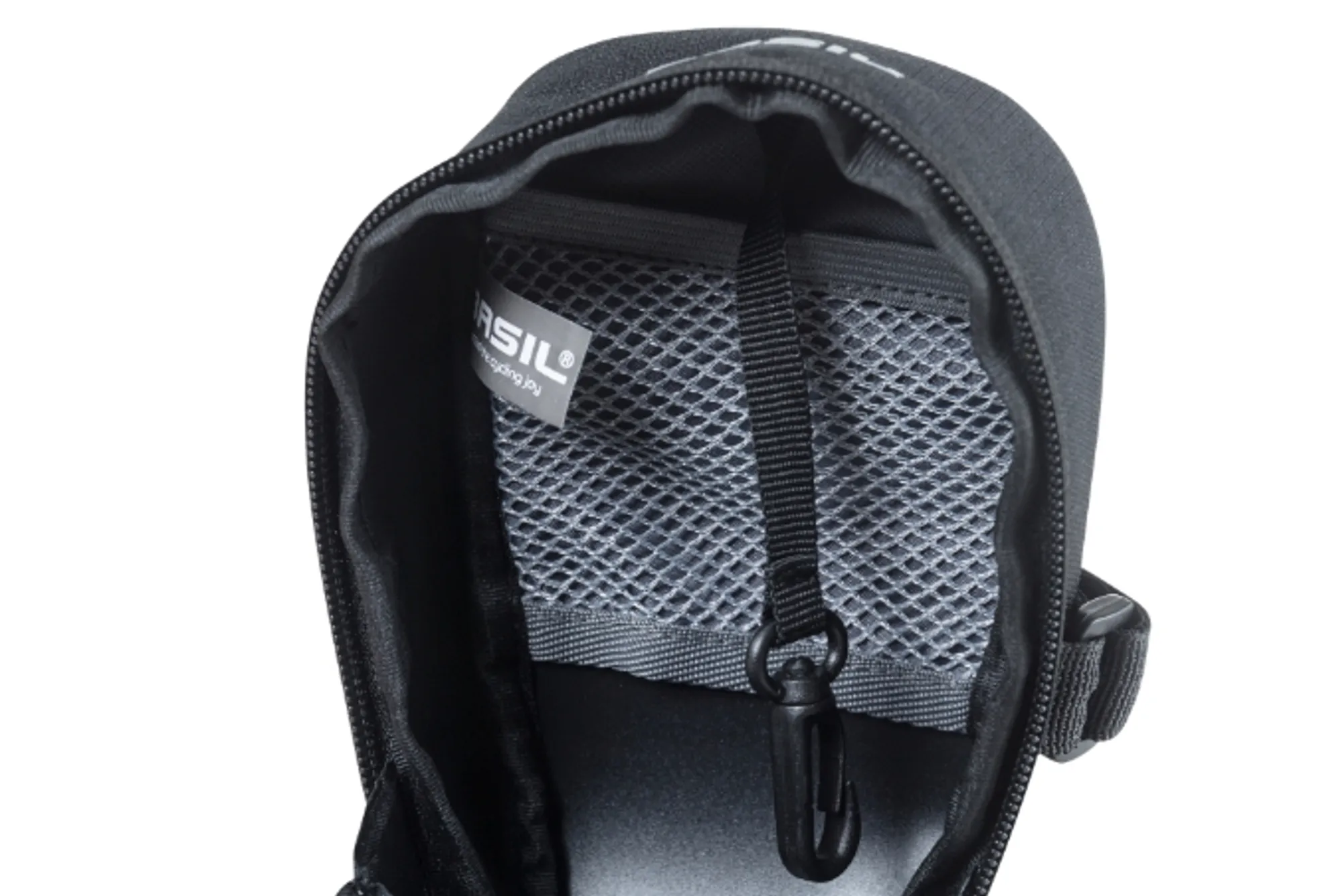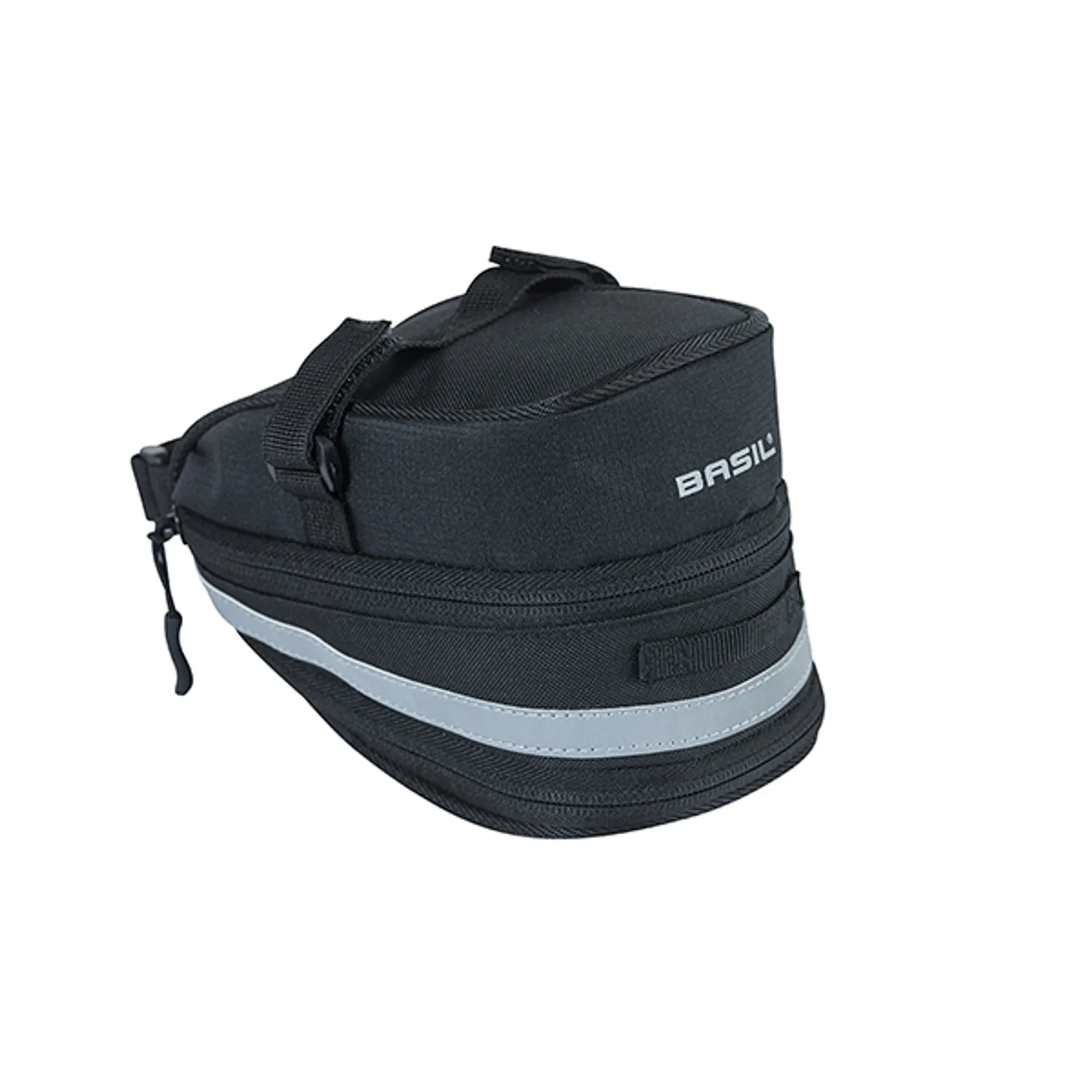 De Basil Mada is een praktische zwarte tas die je aan je fietszadel bevestigt. Met een inhoud van 1 liter kun je er bijvoorbeeld gemakkelijk je fietsslot in kwijt.